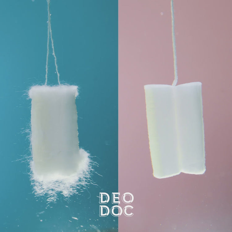 Det finns visserligen tamponger i 100% bomull på marknaden, men eftersom dessa också fäller, valde vi att ta fram våra egna som inte fäller. Tack vare ett hölje i 100% ekologisk bomull förhindras fällning av fibrer."