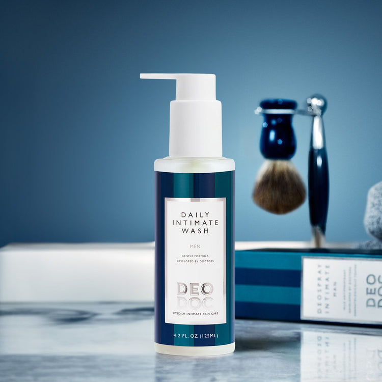 "Baserat på min kliniska erfarenhet som läkare har jag sett hur vanliga tvålar och duschgeléer ofta är för starka och torkar ut den känsliga intimhuden hos män. Därför har vi skapat en mild och skonsam intimtvål med pH 5, anpassad för intimområdet men som även passar för hela kroppen."