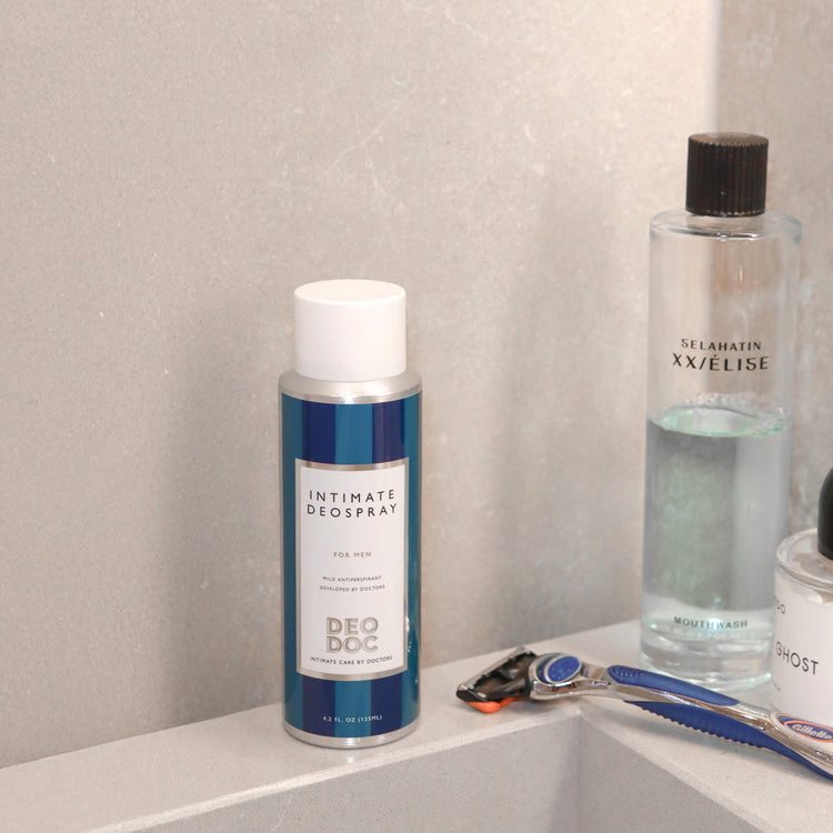 "Armhålorna är inte den enda kroppsdelen som svettas. De apokrina svettkörtlarna som finns i armhålorna, finns även i skrotum-området och ljumskarna. Vår erfarenhet som läkare är att denna svettning kan vara besvärande och ge upphov till svamp, eftersom svamp trivs i fuktiga och svettiga miljöer. Denna intimdeodorant är speciellt formulerad för intimhuden och ser till att intimområdet håller sig torrt.