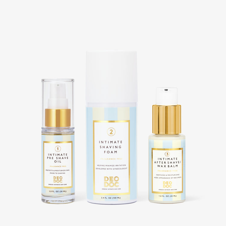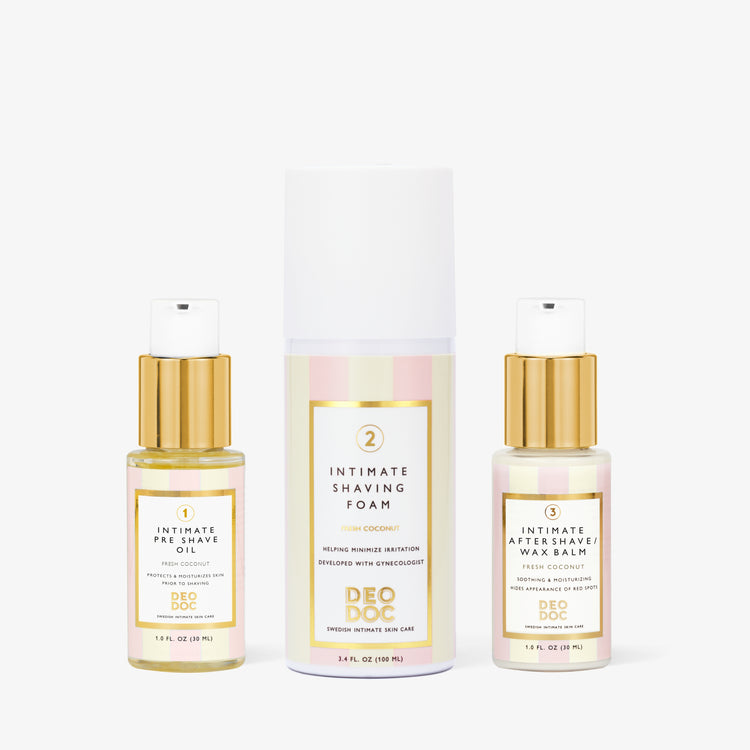 Rakning är ett trauma för huden, så när det inte tas om hand om kan det orsaka irritation som inåtväxande hårstrån och klåda, Det är därför vi har utvecklat vår Intimate Shaving Trio - för att inte bara raka utan för att även förbereda och ta hand om huden efter rakningen."