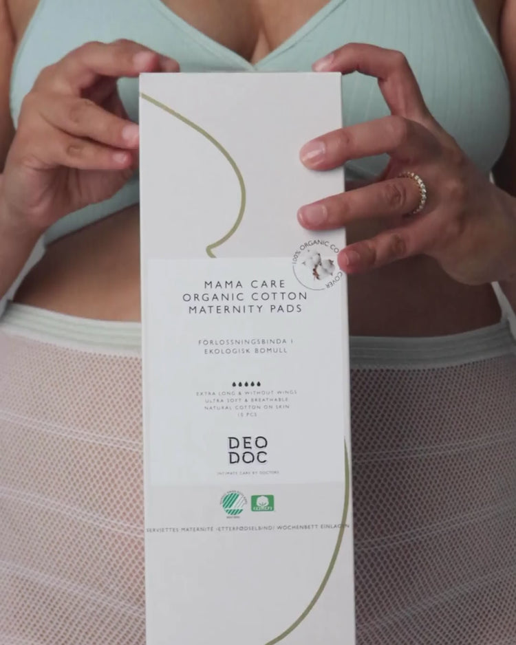"En förlossningsbinda bärs normalt i upp till 6-8 veckor, eftersom man har avslag så länge efter en förlossning. Majoriteten av vanliga förlossningsbindor på marknaden består av plast vilket kan skapa en fuktig miljö som kan leda till obehag och hudirritation vid lång användning. Baserat på min erfarenhet som förlossningsläkare eftersöker kvinnor bättre alternativ och det är därför vi har valt att ta fram förlossningsbindor med 100% ekologisk bomull. Bomull är ett skonsamt och mjukt material att föredra i nära kontakt med det känsliga underlivet. Dessutom låter bomullen huden andas, vilket minskar risken för irritation."