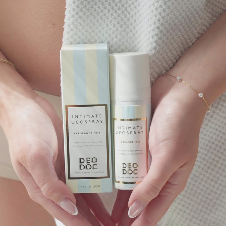 Armhålorna är inte den enda kroppsdelen som svettas. De apokrina svettkörtlarna som finns i armhålorna, finns även i intimområdet och ljumskarna. Vår erfarenhet som läkare är att många på grund av detta tvättar intimområdet överdrivet mycket, vilket kan torka ut den känsliga intimhuden och rubba pH-balansen. Precis som det finns deodoranter för armhålorna har vi därav utvecklat en skonsam intimdeodorant som effektivt motverkar svett och en fuktig miljö.