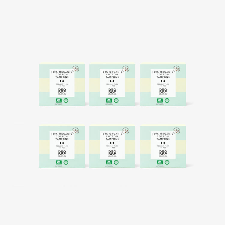 Det finns visserligen tamponger i 100% bomull på marknaden, men eftersom dessa också fäller, valde vi att ta fram våra egna som inte fäller. Tack vare ett hölje i 100% ekologisk bomull förhindras fällning av fibrer."
