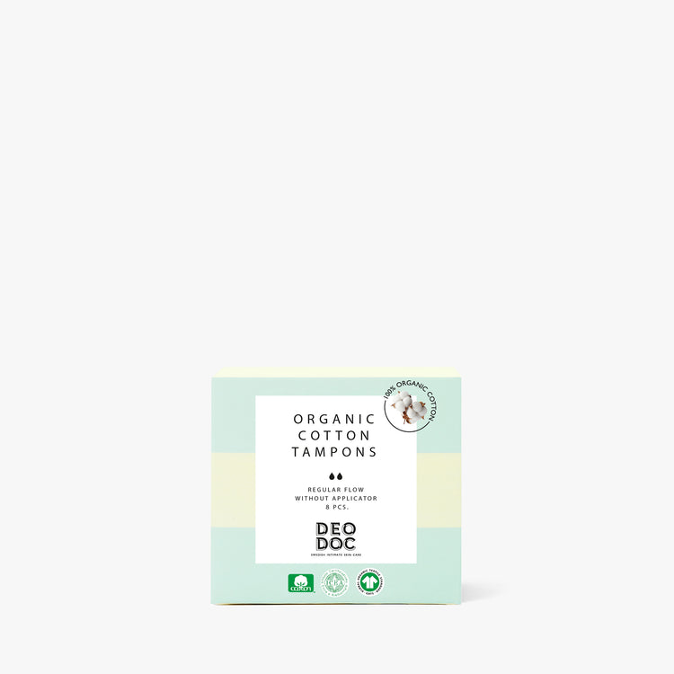 - Våra tamponger (och alla våra andra mensprodukter) är certifierade enligt Global Organic Textiles Standard (GOTS). GOTS är en internationell miljömärkning för textiler som omfattar både sociala och miljömässiga krav. Kraven säkerställs av oberoende tredjepartscertifiering genom hela värdekedjan.