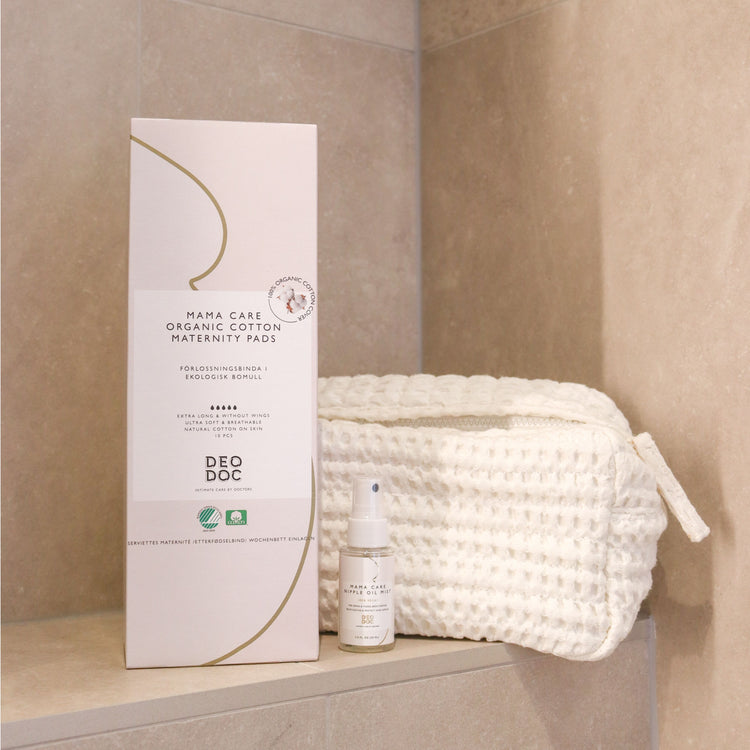 "Mama-kiten innehåller produkter som verkar vårdande för olika hudområden under och efter graviditeten. Gemensamt för huden, oavsett om det är intimhuden, magen eller bröstvårtorna, är att den utsätts för påfrestningar och blir känsligare och skörare. Därför är det viktigt att använda skonsamma produkter som inte irriterar en redan belastad och skör hud."