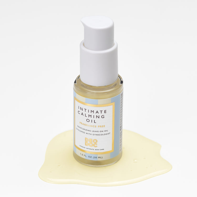 "Precis som huden på kroppen kan även intim hud bli torr och klia. Att det kliar behöver alltså inte vara svamp, utan det kan bero på att vulva och slemhinnor är torra och behöver återfuktning. Vår lugnande intimolja innehåller endast växtbaserade oljor och är som en bodylotion, men för vulvan och slemhinnorna. Kokos, mandel och kamomillolja hjälper till att lugna och återfukta vid obehag, skav eller torrhet.